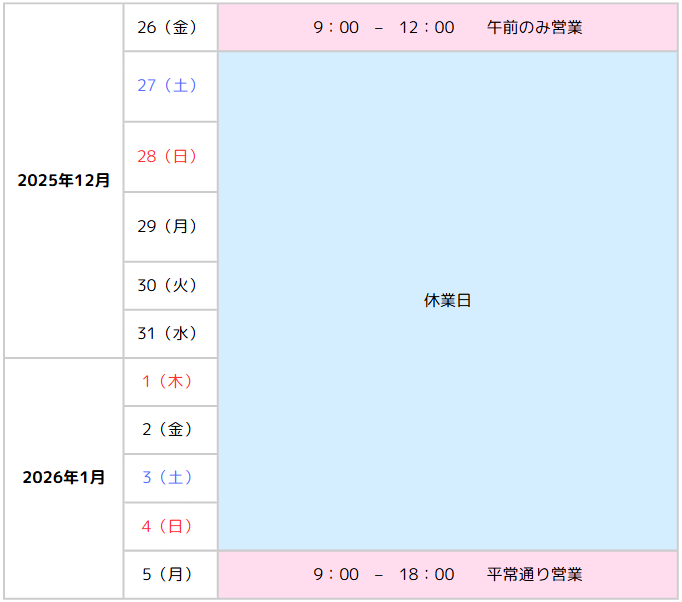 誠に勝手ではございますが、弊社では年末年始に伴い、